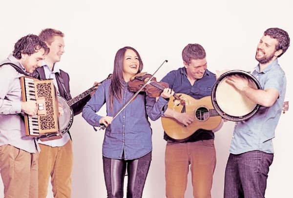 Their distinctive sound lies in the quality of their own compositions interspersed with traditional tunes from Ireland and abroad, which make each set entertaining and unique. Laying the foundations for the music are World and All Ireland Bodhrán champion, Colm Phelan and Conal O’Kane, who is fast making a name for himself as one of the finest guitarists of this generation. The gripping rhythm section sets a breathtaking pace for the music while the sweet, charismatic voice of Áine McGeeney draws audiences into the music in a way very few performers can achieve. When not sining, Áine’s energetic style of fiddle playing is complimented by multi award winning banjo and mandolin virtuoso James Harvey. His ability to transcend genres, combined with his unparalleled technical ability is a joy to behold. Bridging the gap between melody and accompaniment is the piano and piano accordionist, Tadhg Ó Meachair. The Dublin native is renowned for his unique approach to bass work and accompaniment, while also having picked up national awards for his melody playing.